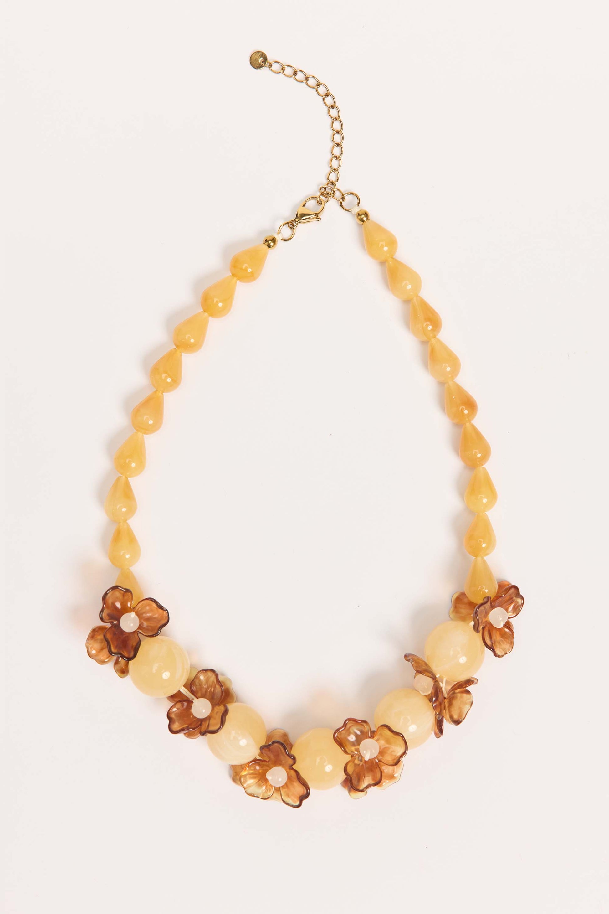 Finished with an adjustable gold-toned chain, the Floral Necklace sits comfortably at the neckline and adds instant impact to simple outfits. A real feel-good accessory that brings colour, texture and personality to day or night styling.
